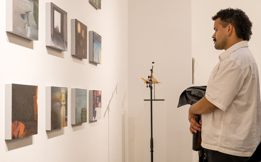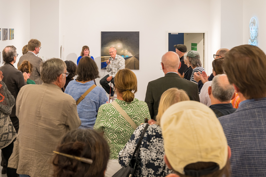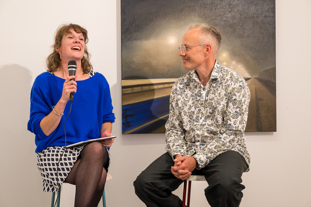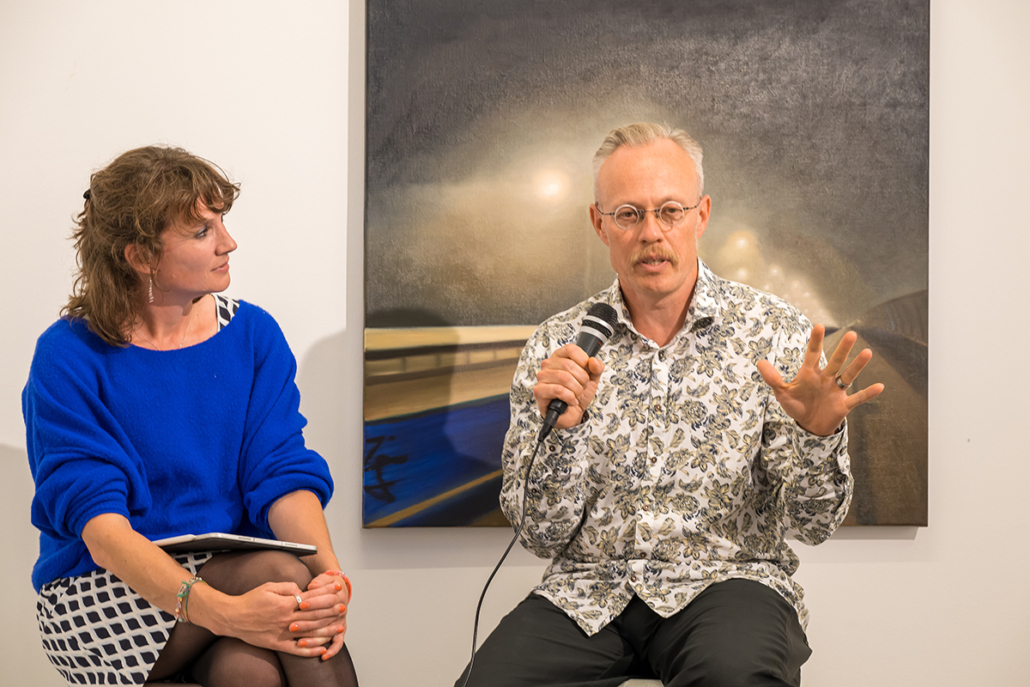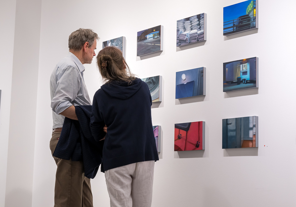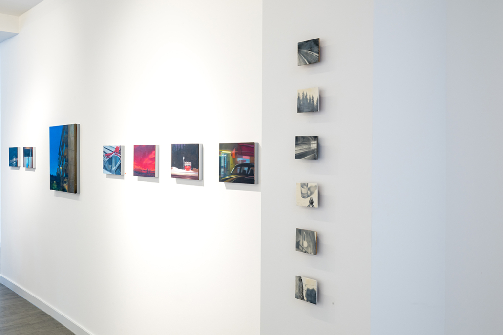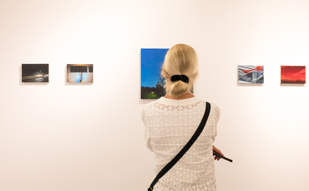 Mikael Jacobsson, geboren 1972 in Schweden, beschäftigt sich in seinem Werk mit der Flüchtigkeit des Moments, mit jener Unschärfe, die durch Bewegung entsteht. Seine Bilder zeigen Häuser, Straßen, Bäume, Landschaften, Innenräume und Detailaufnahmen, hin und wieder auch ein Stück Himmel. Alles wirkt leicht verschwommen, wie eine vorbeiziehende Szenerie, betrachtet durch das Fenster eines fahrenden Autos oder Zuges. Jacobsson gelingt es, diesen flüchtigen Moment in all seiner Intensität festzuhalten. Fast scheint man ihn greifen zu können. Seine Werke sind menschenleer, doch keineswegs leer oder einsam: Die Häuser wirken bewohnt, die Felder bestellt, leuchtende Fenster und gepflegte Gärten zeugen davon. Was sich dort genau abspielt, bleibt verborgen – geheimnisvoll und still. Sein künstlerischer Ansatz basiert auf fotografischen Vorlagen. Motive, die im Alltag oft übersehen werden, verwandelt er in poetische Bildräume. In der Übersetzung in die Malerei tritt die Realität zurück. Es entsteht ein Zustand zwischen Erinnerung und Wahrnehmung, zwischen Anwesenheit und Abwesenheit.
